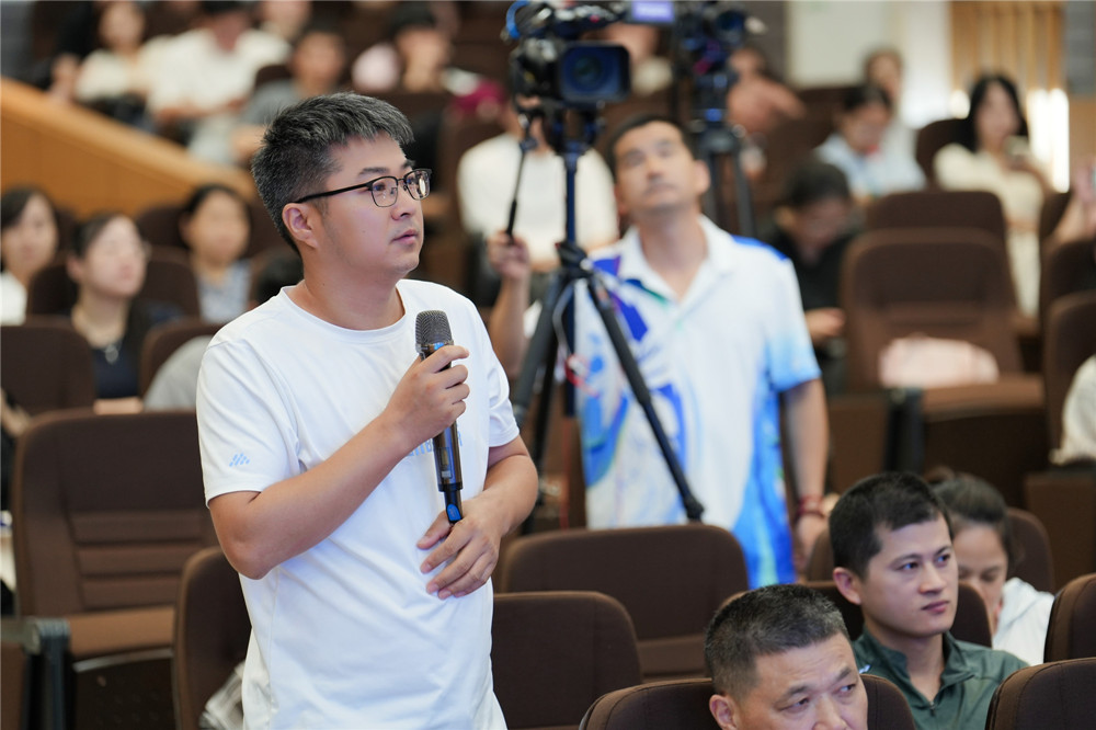 在互动环节中,在场听众与李超研究员围绕“三体计算星座”的技术前景、行业应用以及智能计算领域人才培养的院校选择等议题展开了深度交流。李超研究员以专业且耐心的态度逐一回应,现场氛围热烈。在探讨青少年学生前沿科技教育路径时,他特别肯定了杭州在科学普及教育方面做出的许多创新尝试,诸如市科协搭建的杭州科学大讲堂等科普平台,之江实验室开放日活动以及云栖小镇2050大会等,都为青少年学生提供了多元化前沿科技学习机会,值得参与和体验。
