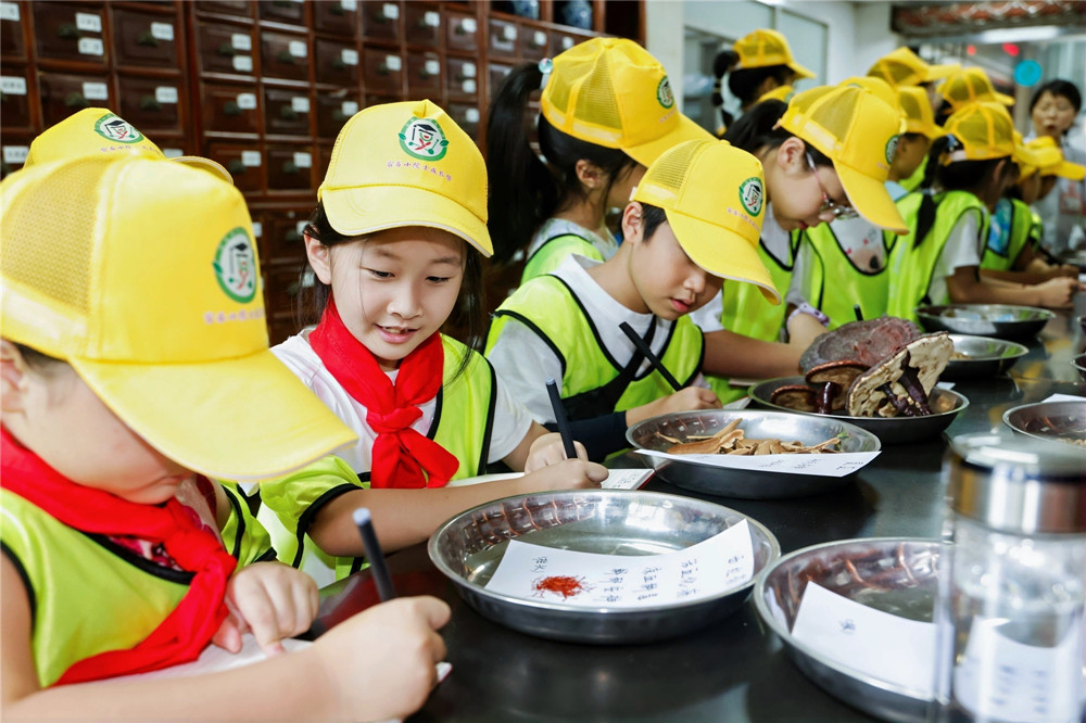 中药房体验环节成为活动亮点。参与者们在专业药师指导下,通过特制的触觉盲盒(内置浙八味道地药材)、智能气味鉴别仪等创新教具,亲身体验“眼看色泽、手摸质地、鼻闻气味、口尝味道”的中药传统鉴别四法。科教楼内,非遗“杉树皮夹板制作技艺”传承人的现场演示引人驻足,特别是经过“三蒸九晒”(三次蒸制、九次晾晒)古法工艺制作的张氏秘制百草膏、接骨丹等珍品,让参观者深切感受到传统医药“匠人匠心”的智慧。