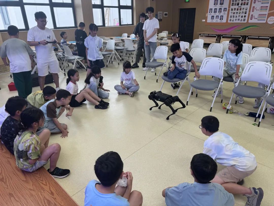 在活动的压轴环节,一场别开生面的“机器狗见面会”将气氛推向高潮。支部成员们带领孩子们与机器狗进行互动,只见机器狗时而疾驰穿梭,时而腾空跃起,引得阵阵惊呼,科技的魅力在这个充满童趣的互动中展现得淋漓尽致。此外,活动现场特别设置了“科学游戏工坊”,通过趣味互动让孩子们在玩中学。