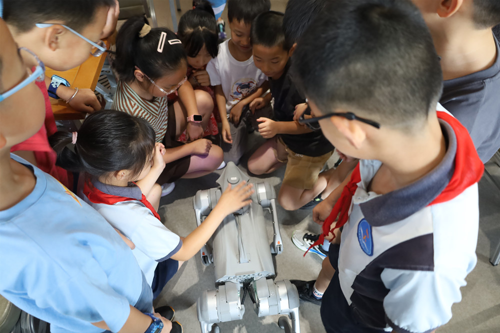 零距离的体验环节总是格外地受孩子们欢迎。“前进、后退、下蹲、跳跃……”舞台上,看似笨拙的机器狗活灵活现地表演“杂技”,看得孩子们直呼“再来一遍”;舞台下,大家伙把机器人围得水泄不通,各种握手、对话,恨不得打包带回家。童年里的那一个个好奇的眼神、一声声有趣的“哇塞”,让科技在这一刻被赋予了生命力与亲和力。