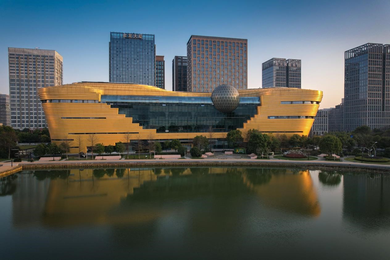 杭州钱塘江南岸矗立着一座形似“金元宝”的建筑,远远望去,“金元宝”中央镶嵌着一个“地球”,这便是全球第一家以低碳为主题的大型科技馆——中国杭州低碳科技馆。