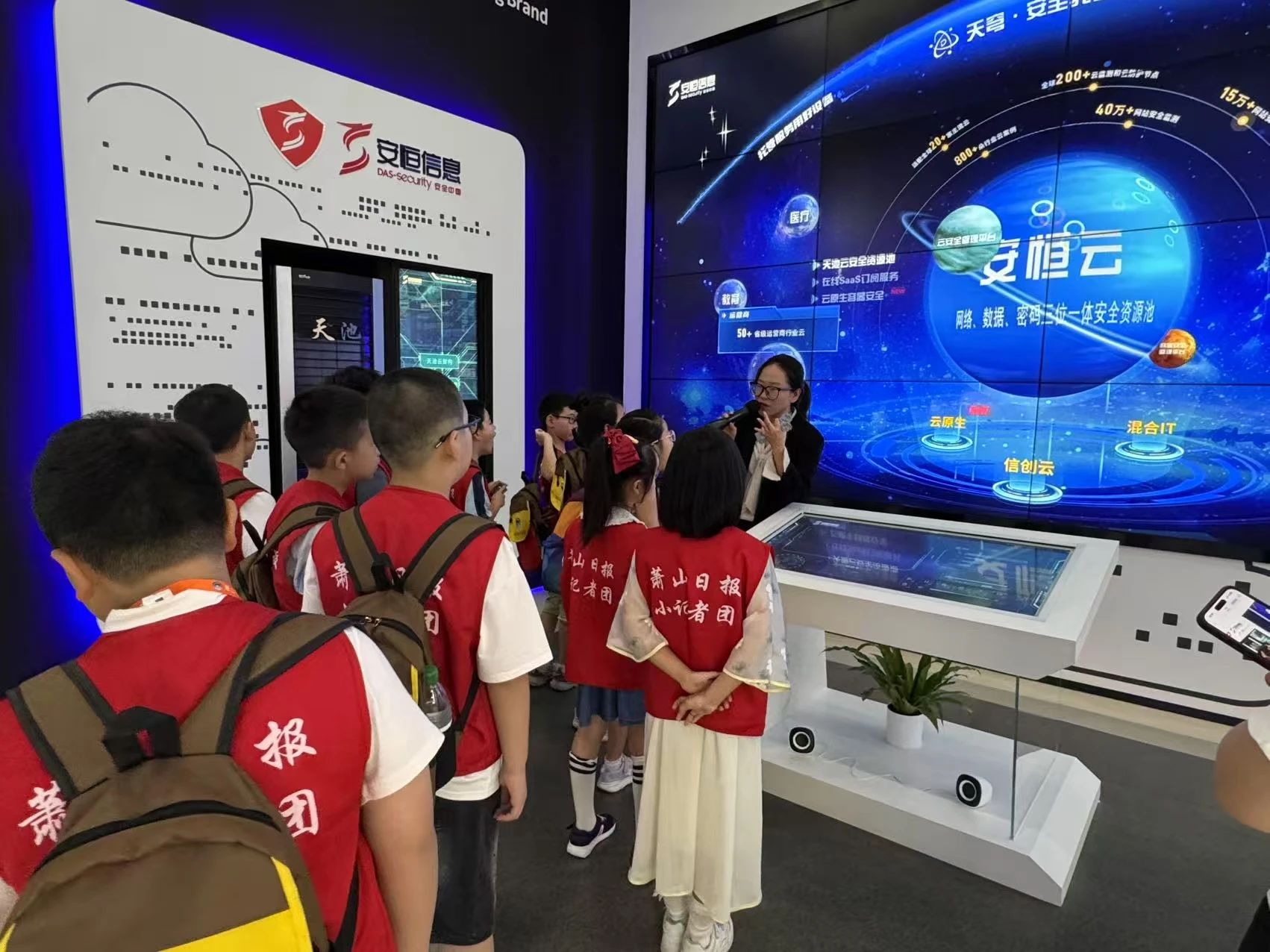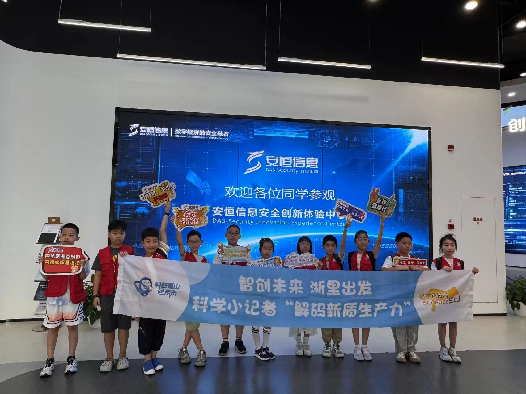 据悉,作为浙江省新质生产力科普体验馆,安恒信息安全创新体验中心自2019年开放以来已接待参观者15万人次,举办近百场科普活动。前沿技术区通过实体设备与led大屏的交互,直观展示了网络安全的最新技术趋势。这次探访不仅让小记者们认识到网络安全的重要性,更让他们切身感受到“新质生产力”给网络安全领域带来的创新变革。