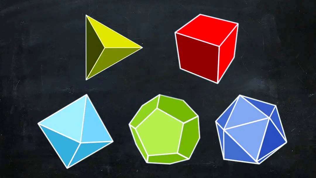 正多面体的定义与分类:5种正多面体(正四面体、正六面体、正八面体、正十二面体、正二十面体)的特征,“每个面都是相同正多边形、每个顶点连接方式相同”的核心属性。