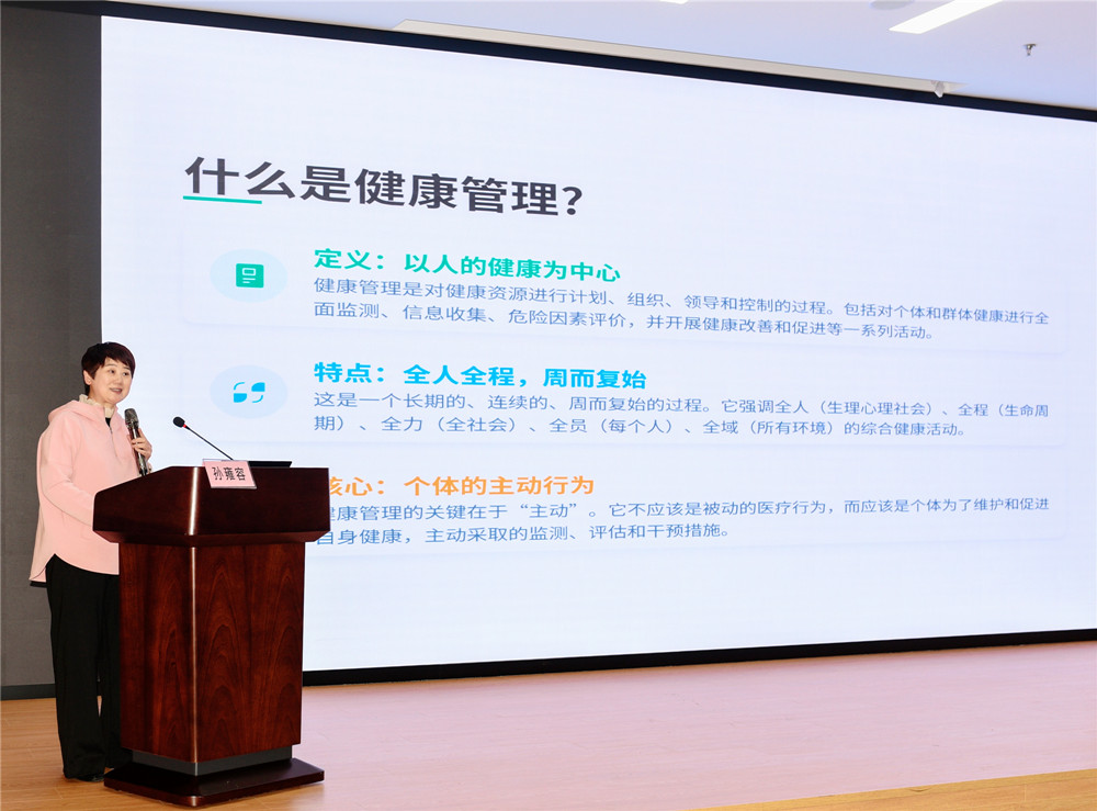 活动中,杭州市科协党组书记、主席孙雍容为全体干部职工开展健康生活方式专题讲座。孙雍容围绕健康的多维定义、医学发展方向及健康管理的核心要义展开讲解,结合干部群体的工作特点与高发健康风险,剖析了不合理饮食、缺乏运动等不良生活方式的危害,重点普及了“三高”防控、合理膳食、科学作息等实用健康知识,还介绍了科技发展对于健康的正面影响。她倡导全体干部职工养成良好生活习惯,科学调节身心状态,做自身健康的第一责任人,以强健的身体素质、饱满的精神面貌投入工作,为科协事业高质量发展筑牢坚实的身心保障。